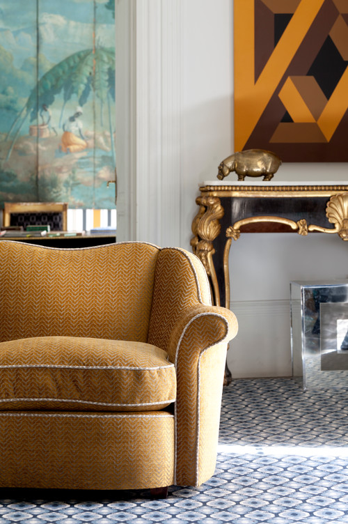 Por último, Macarena, de Macarena Saiz Textiles cuenta que “mandan los grandes estampados. Estamos viviendo una vuelta a los motivos más llamativos, un maximalismo inspirado por la pintura abstracta, la geometría Op-art. También la vegetación ha entrado en la decoración. Sin embargo, considero que estos estampados deben ocupar un lugar secundario en la decoración, bien para una pieza muy concreta a la que queremos dar protagonismo, bien para unos cojines que podremos cambiar tan pronto como nos cansemos de ellos; la tapicería de un sofá debe ser serena, más neutra y dar más importancia al material, la textura y la resistencia”.